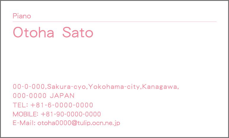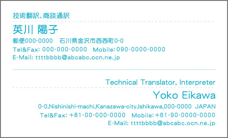 日本語と英語を表面に表記した名刺です。これでしたら、裏面料金はかかりませんので、お得です。