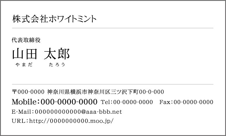 やわらかいイメージの書体で、真面目な中にも人間性を感じられる名刺です。