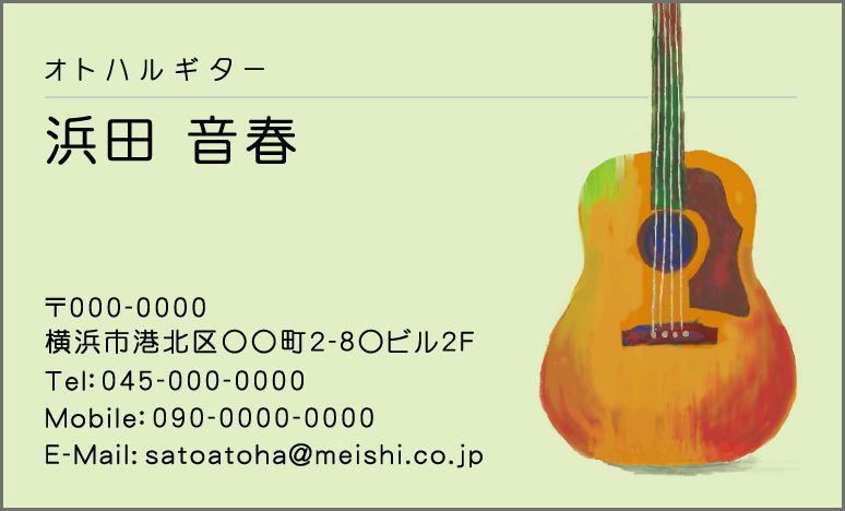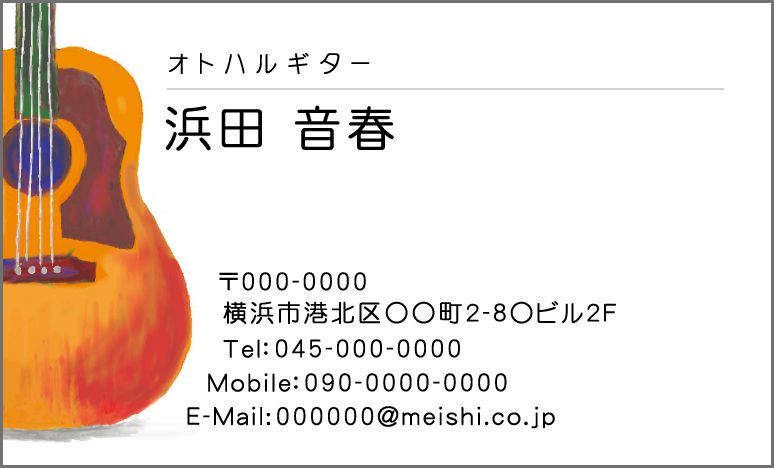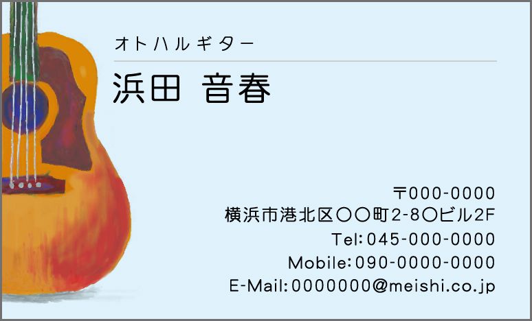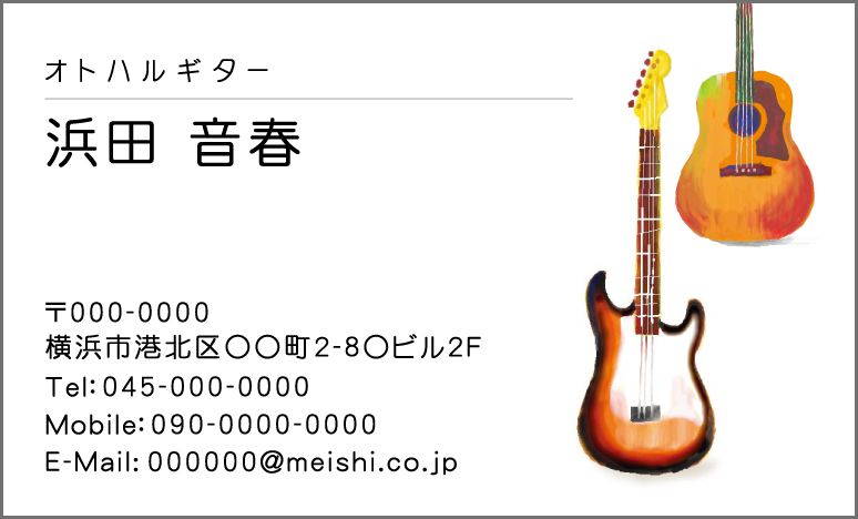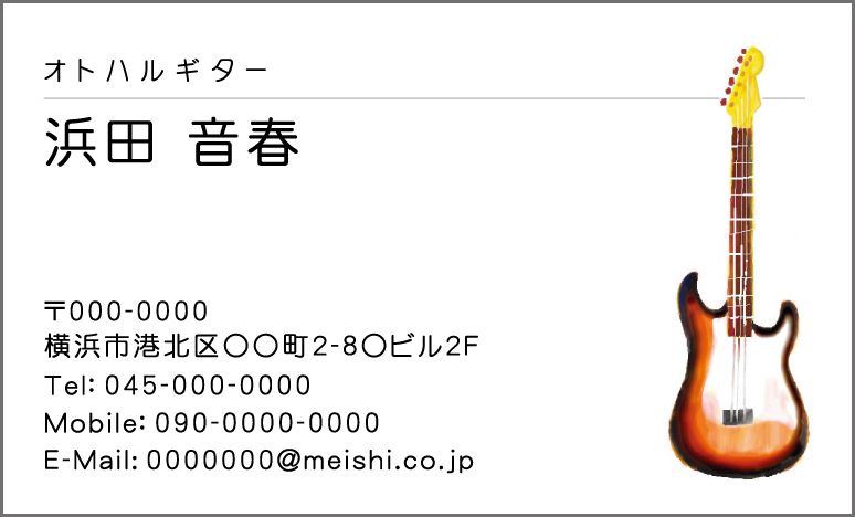 ギターリストの方などにご使用いただけるギター名刺。ギター音楽が好きな方にも。