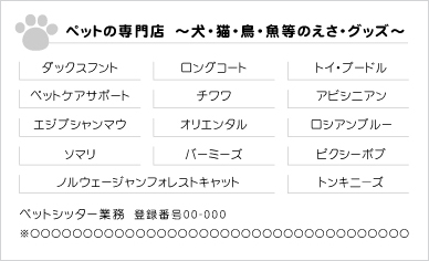 ペット関連の業務を行っている方に! いろいろな仕事ができたり、さまざまな資格を持っていても、持っているだけでは、宝の持ち腐れ。名刺にどんどん書いておきましょう。