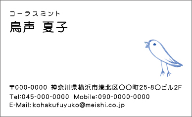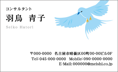 幸せを呼ぶ青い鳥のイラスト名刺です。明朝体で作成しました。