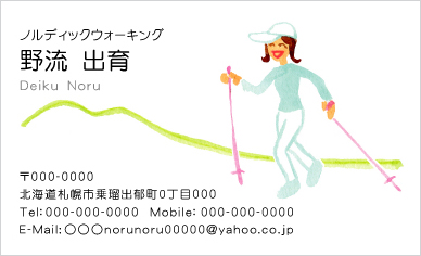 ノルディックウォーキングが趣味の方、トレーナーの方等に使っていただきたい名刺です。楽しそうに見えるように、少しオーバーに腕をふっている女性のイラストにしました。
