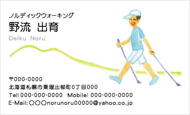 ノルディックウォーキングが趣味の方、トレーナーの方等に使っていただきたい名刺です。男性イラストです。