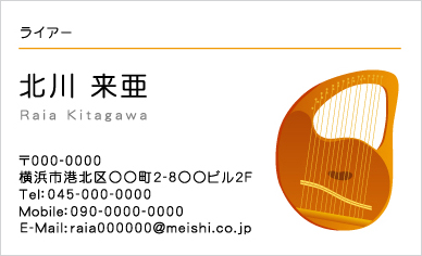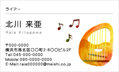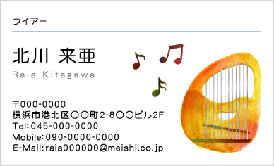 弦楽器ライアー(リュラー、リラ)と音符のイラストを使ってデザインした名刺です。