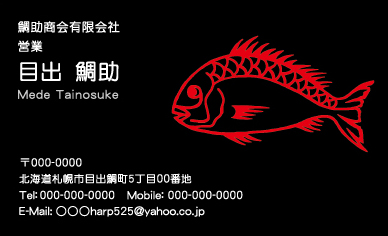 縁起のいい鯛のデザイン。赤い色は、情熱的に見えたりエネルギッシュな印象を持たれますよ。