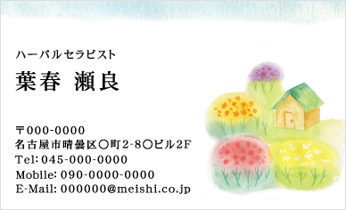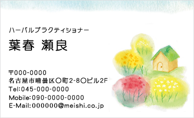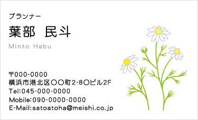 カモミールイラストの名刺です。書体は、礼儀正しい印象の明朝体を使用。